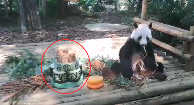 工作人員特地從四川空運(yùn)了一批新鮮的方竹筍,還做了個生日蛋糕給他