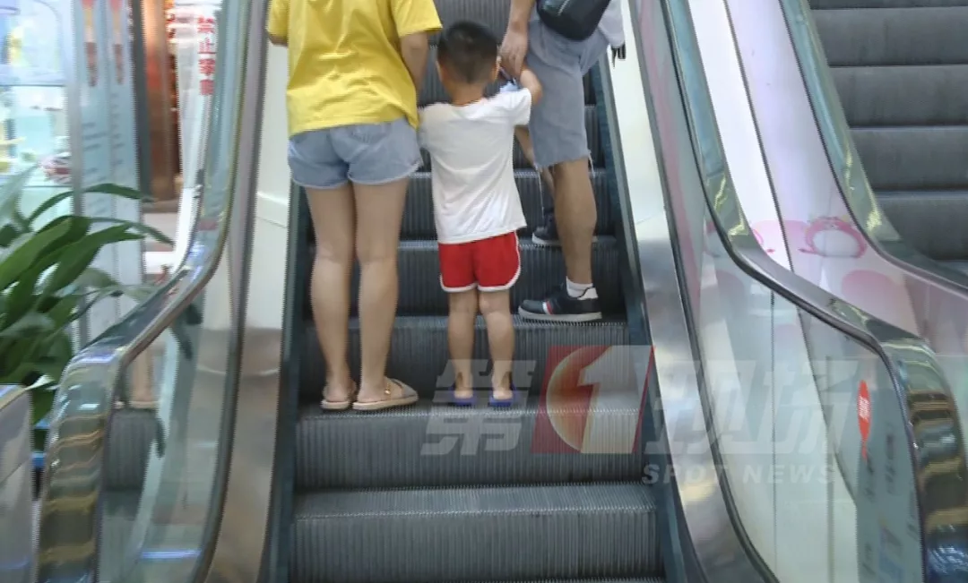 在商場的自動扶梯上,兒子的洞洞鞋被卷進(jìn)了扶梯的空隙導(dǎo)致腳拔不出來。
