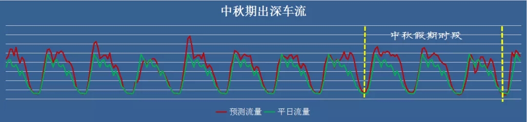 根據(jù)近三年中秋假期前夕的交通流量,結(jié)合今年深圳市道路車輛通行情況,深圳交警預(yù)計(jì),“中秋”假期期間(假期前一日12時(shí)至假期最后一日12時(shí)),出入深車輛數(shù)均將超過150萬(wàn)輛次。