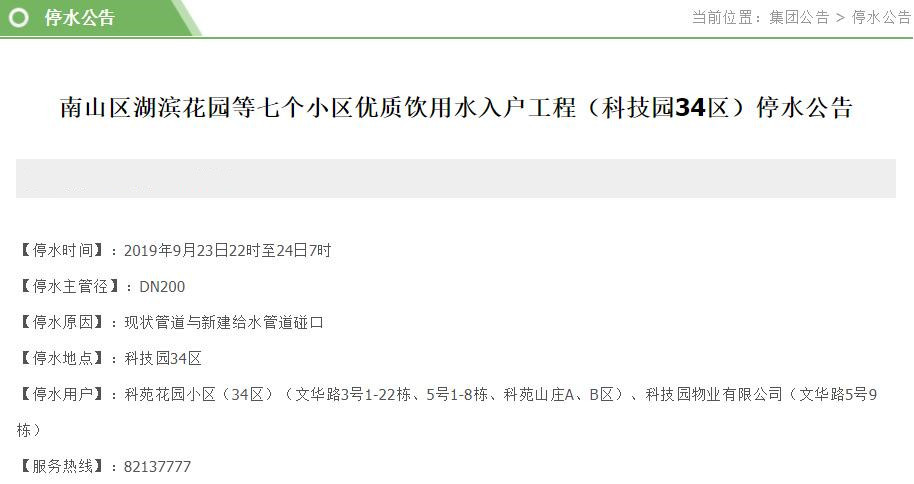 市民對(duì)停水公告有任何疑問(wèn),可以撥打水務(wù)集團(tuán)服務(wù)熱線:82137777。