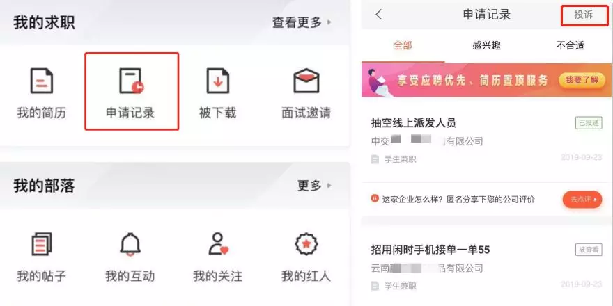 網(wǎng)站設(shè)定的投訴規(guī)則是:從自己申請(qǐng)過的求職記錄里選取投訴對(duì)象。