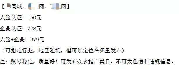 但民警發(fā)現(xiàn),網(wǎng)絡(luò)上一些信息黑產(chǎn)交易群中,認(rèn)證通過的企業(yè)賬號(hào)竟是明碼標(biāo)價(jià)的。