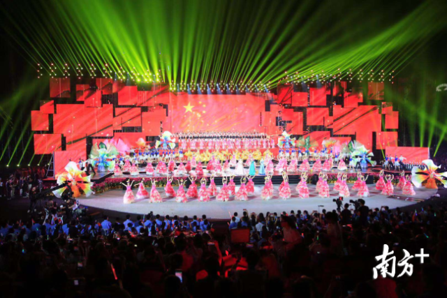 9月29日晚,“我愛你中國”慶祝中華人民共和國成立70周年深圳群眾文藝晚會(huì)正在深圳灣畔深圳人才公園海上舞臺(tái)絢麗上演。整場晚會(huì)以歌舞等形式,將更多的深圳人帶入了喜慶祥和的“國慶時(shí)間”。