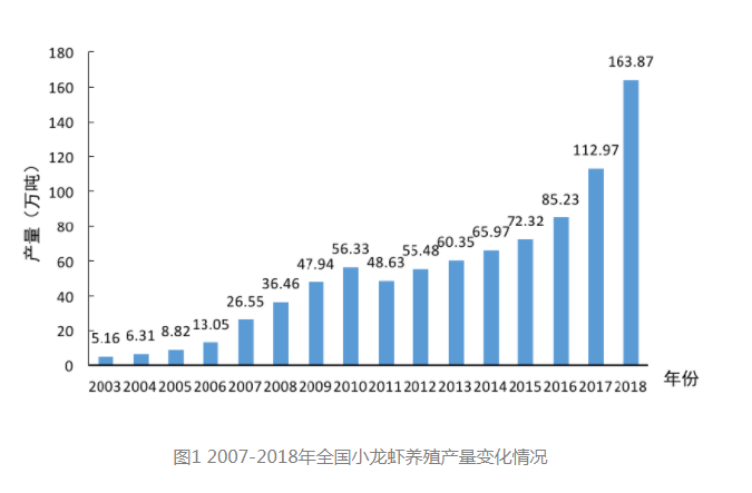 隨著生活水平的提高,人們對“食”提出了更高要求,色香味俱全的美食往往也更讓人難以抗拒?;疱仧拘↓埼r作為當(dāng)代青年人的“最愛”,已獨(dú)得恩寵許多年,尤其是小龍蝦。每年夏季,是吃小龍蝦的旺季。據(jù)部分媒體不完全統(tǒng)計(jì),光南京一個(gè)城市每年的龍蝦消費(fèi)量都超萬噸,而北上廣深蓉5個(gè)城市,小龍蝦門店數(shù)均超3000家。此外,據(jù)2019年中國小龍蝦產(chǎn)業(yè)發(fā)展報(bào)告顯示,小龍蝦產(chǎn)業(yè)總產(chǎn)值達(dá)3690億元,占據(jù)了第三產(chǎn)業(yè)產(chǎn)值的主導(dǎo)地位。這種巨大的消費(fèi)力帶動(dòng)了小龍蝦養(yǎng)殖業(yè)的發(fā)展,到2018年,全國小龍蝦養(yǎng)殖產(chǎn)量已超163萬噸。