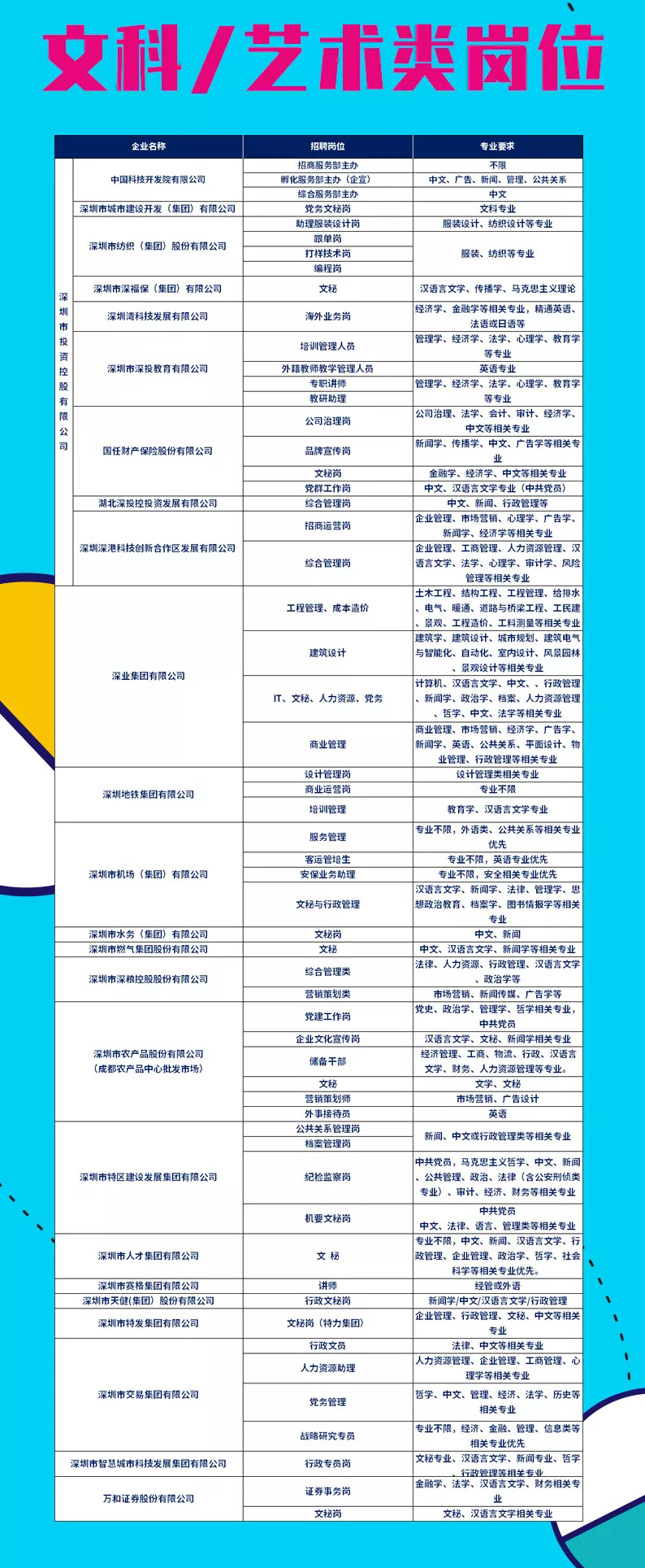 見圳客戶端·深圳新聞網(wǎng)2019年10月10日訊 據(jù)“深圳國資”微信公眾號消息,深圳市屬國企開啟“花式”組團校招模式,“菁英聚鵬城”深圳市屬國企2020校園招聘會來了!