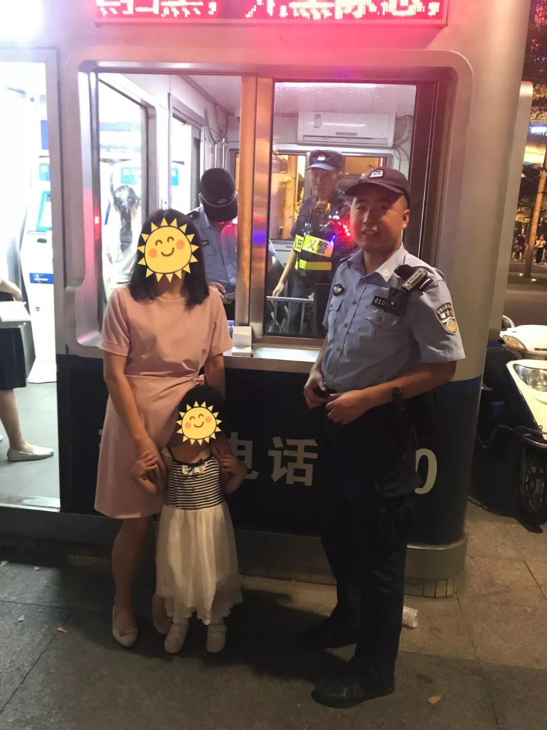 近日,深圳市公安局福田分局蓮花派出所輔警張日平、文應(yīng)云在燈光秀觀賞現(xiàn)場(chǎng)周邊巡邏時(shí),發(fā)現(xiàn)一名3歲的小女孩走失,通過(guò)發(fā)動(dòng)群防群治力量共同查找,聯(lián)系上小女孩的家長(zhǎng)前來(lái)書城警銀亭,經(jīng)核實(shí)身份信息無(wú)誤后,讓其接回小女孩。