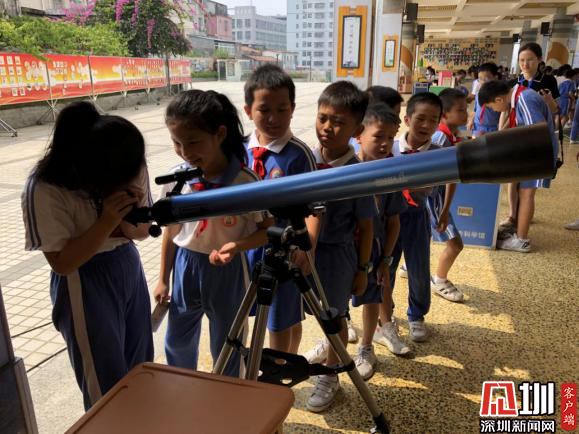 同學(xué)們爭相體驗天文望遠(yuǎn)鏡
