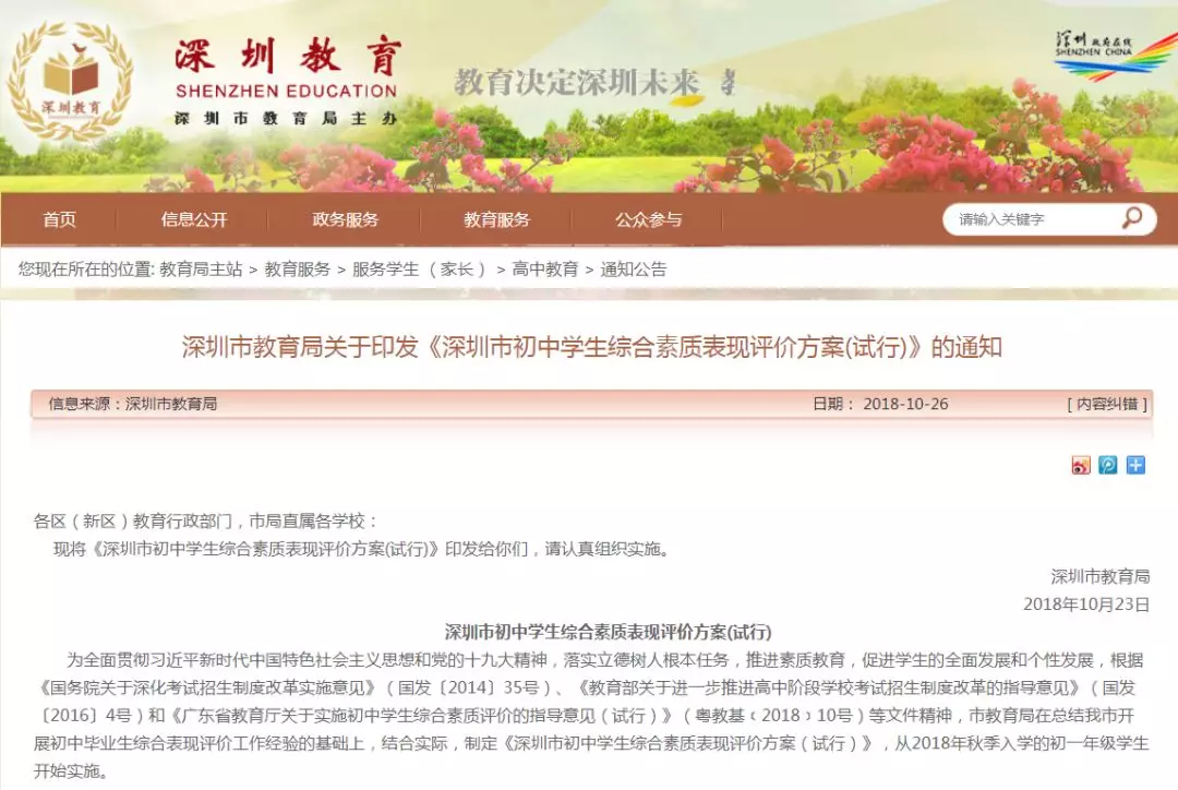 據(jù)了解,《綜評(píng)方案》主要包含思想品德、學(xué)業(yè)水平、身心健康、藝術(shù)素養(yǎng)和實(shí)踐創(chuàng)新等5個(gè)方面,以寫(xiě)實(shí)記錄、學(xué)生成長(zhǎng)過(guò)程性資料記錄、評(píng)語(yǔ)評(píng)價(jià)及重要觀測(cè)點(diǎn)計(jì)分評(píng)價(jià)相結(jié)合的形式評(píng)價(jià)深圳市初中學(xué)生綜合素質(zhì)表現(xiàn),并從2018年秋季入學(xué)的初一新生開(kāi)始實(shí)施。