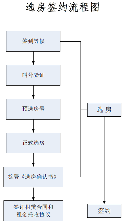 選房地點(diǎn)在深圳市福田區(qū)紅荔西路蓮花大廈東附樓三樓選房區(qū)。選房方式為合格家庭按照選房排位順序依次選擇對(duì)應(yīng)配租面積標(biāo)準(zhǔn)的住房,對(duì)應(yīng)房源選完即止。選房簽約流程如下: