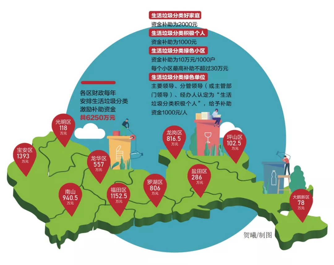 福田區(qū)1152.5 萬元、羅湖區(qū)806 萬元、南山區(qū)940.5 萬元、鹽田區(qū)286 萬元、寶安區(qū)1393 萬元、龍崗區(qū)816.5 萬元、龍華區(qū)557 萬元、坪山區(qū)102.5 萬元、光明區(qū)118 萬元、大鵬新區(qū)78 萬元,共6250萬元。