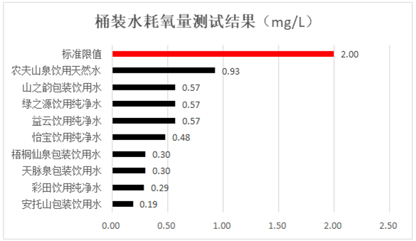 12款桶裝水污染物安全測試均符合標(biāo)準(zhǔn)要求。其中,耗氧量方面,所有飲用純凈桶裝水和其它飲用桶裝水耗氧量均符合標(biāo)準(zhǔn)要求,安托山、彩田、天脈泉和梧桐仙泉包裝飲用水受有機污染更少;所有飲用純凈桶裝水和其它飲用桶裝水三氯甲烷符合標(biāo)準(zhǔn)要求,農(nóng)夫山泉飲用天然水和山之韻包裝飲用水未檢出,表現(xiàn)更好。