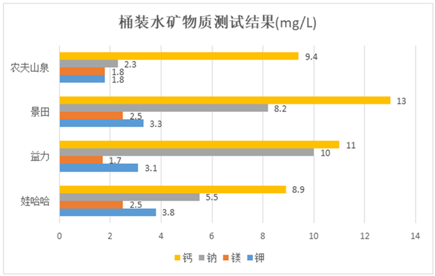3款飲用天然礦泉水和1款飲用天然水中的礦物質(zhì)鉀、鈣、鈉、鎂是人體所需元素,均符合國(guó)家標(biāo)準(zhǔn)及產(chǎn)品標(biāo)簽明示指標(biāo)的要求,分別是農(nóng)夫山泉、景田、益力和娃哈哈。