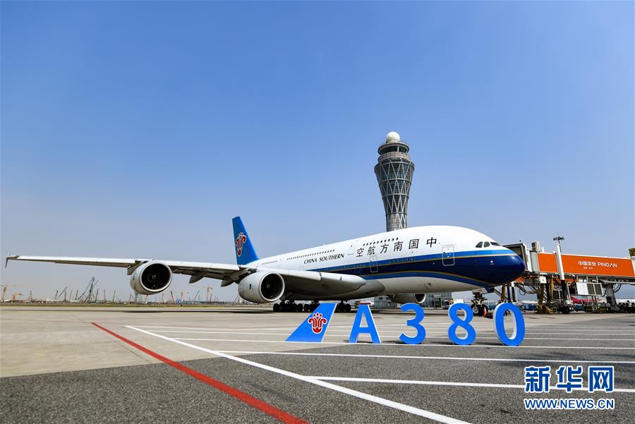 10月27日,南方航空空中客車A380客機(jī)??吭谏钲跈C(jī)場(chǎng)。當(dāng)日下午,由全球最大寬體客機(jī)——空中客車A380執(zhí)飛的南航CZ3153次航班由深圳起飛前往北京,標(biāo)志著這款“空中巨無(wú)霸”機(jī)型重返深圳機(jī)場(chǎng)。南航曾在2014年5月開始啟用A380執(zhí)飛京深航線,后因動(dòng)態(tài)運(yùn)力調(diào)配停飛。新華社記者毛思倩攝