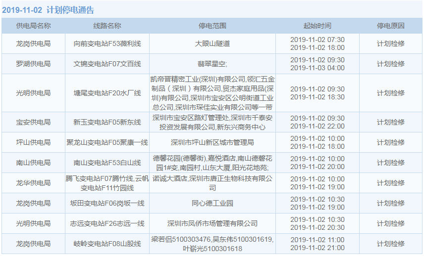 11月1日-15日,深圳這些地方將停電(附全名單)