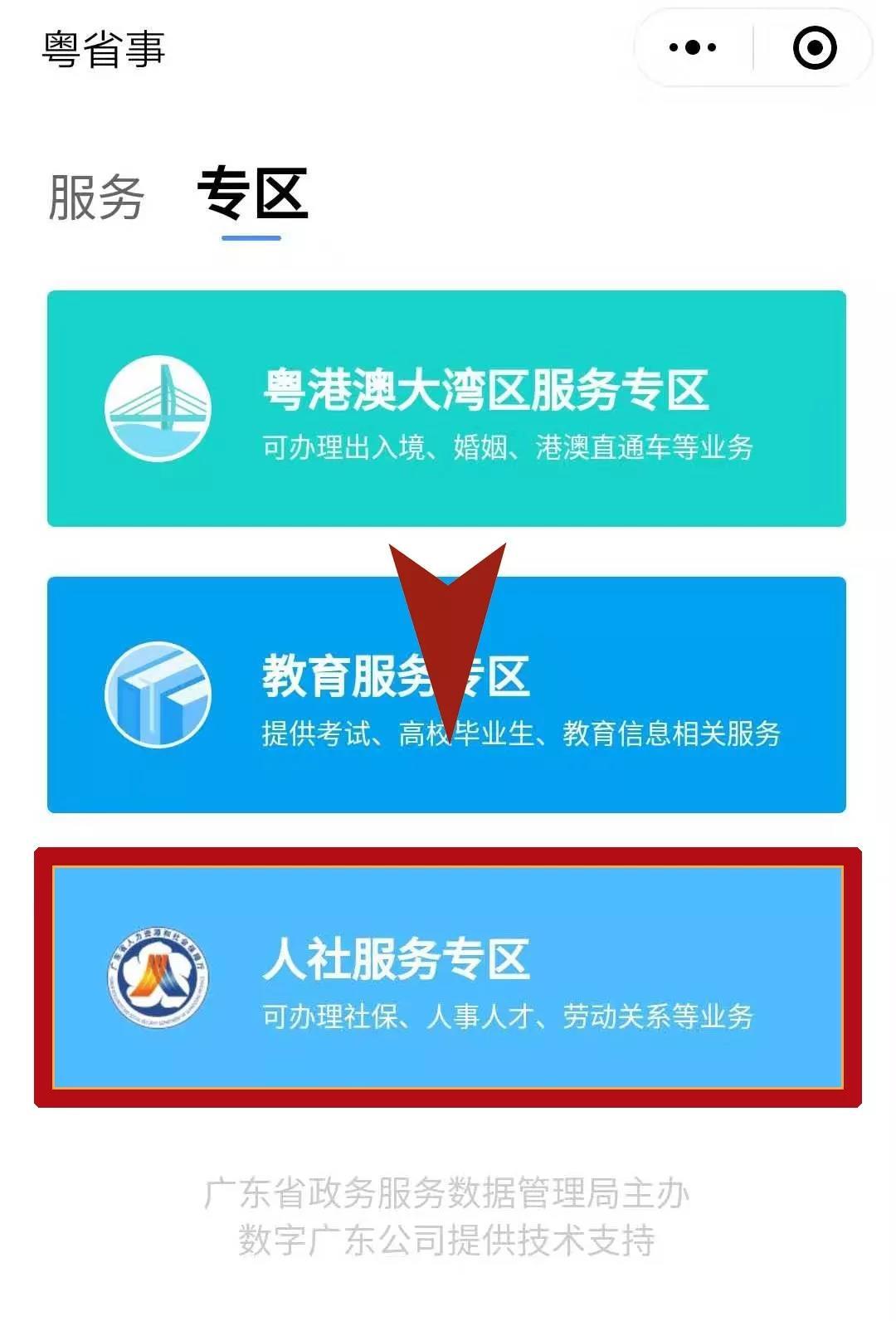 下拉并選擇“專區(qū)”,選擇“人社專區(qū)”
