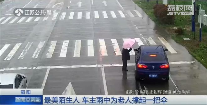 為老人撐開了一把粉色雨傘,