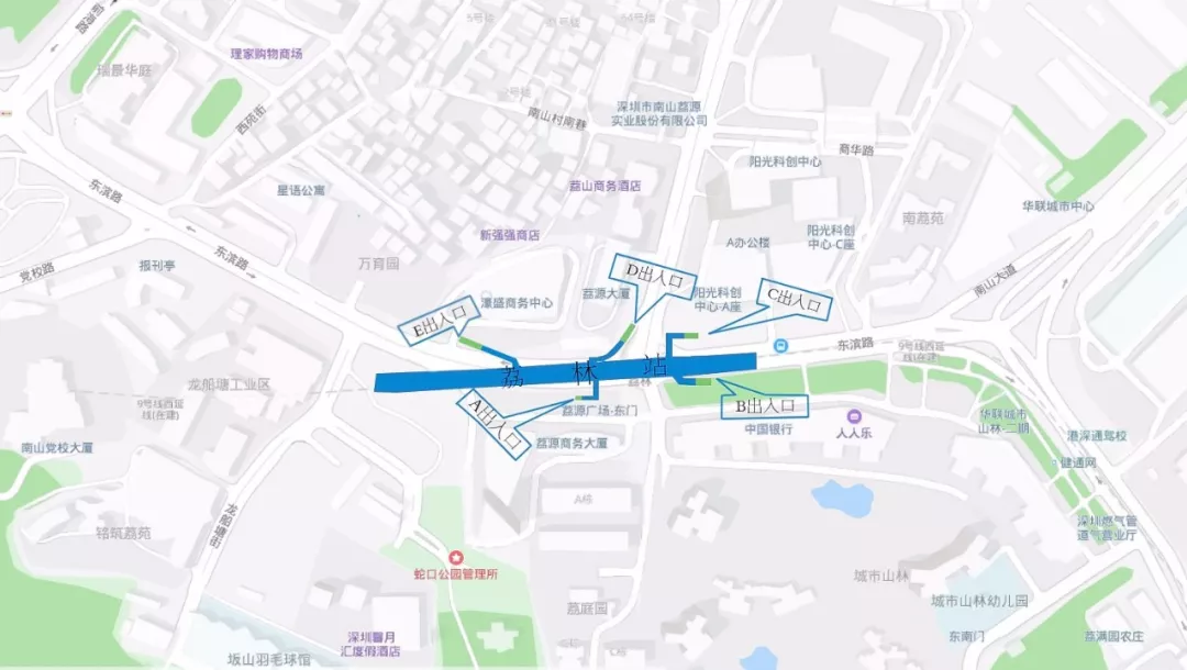 B出入口位于城市山林廣場(chǎng)北側(cè)