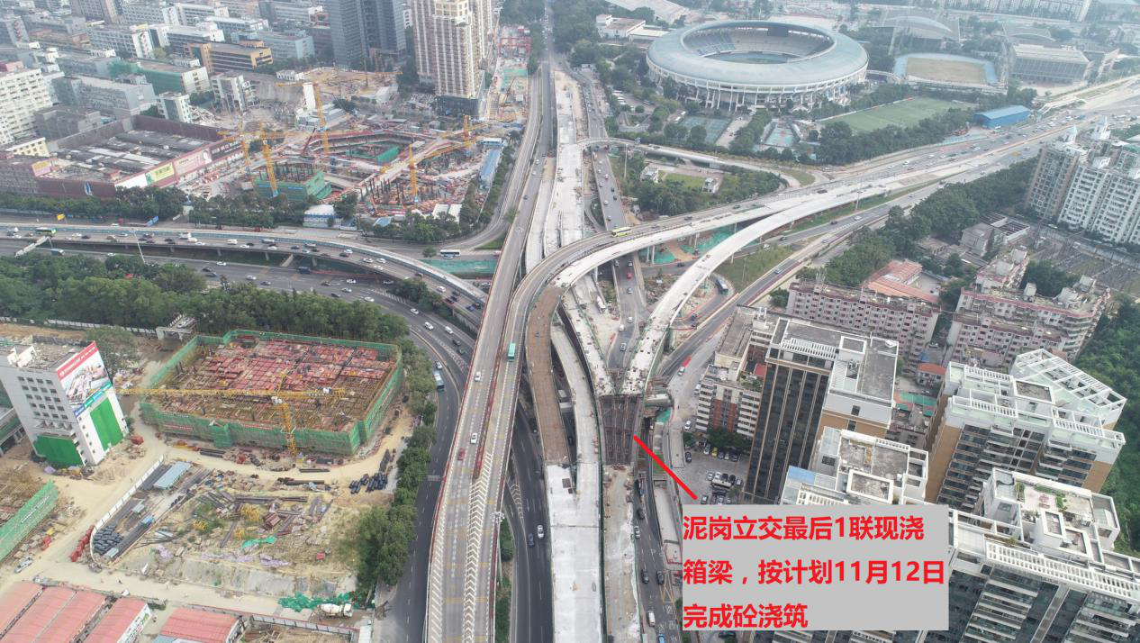 深圳特區(qū)報(bào)2019年11月9日訊 坂銀通道工程北環(huán)立交、泥崗立交橋梁主體工程將于11月12日完成最后1聯(lián)砼箱梁澆筑,迎來全線貫通。泥崗立交J1(北環(huán)大道轉(zhuǎn)泥崗東路東行)、D(北環(huán)大道轉(zhuǎn)上步北路南行)、S1(上步北路南行轉(zhuǎn)泥崗西路)匝道橋預(yù)計(jì)12月初開放通車。