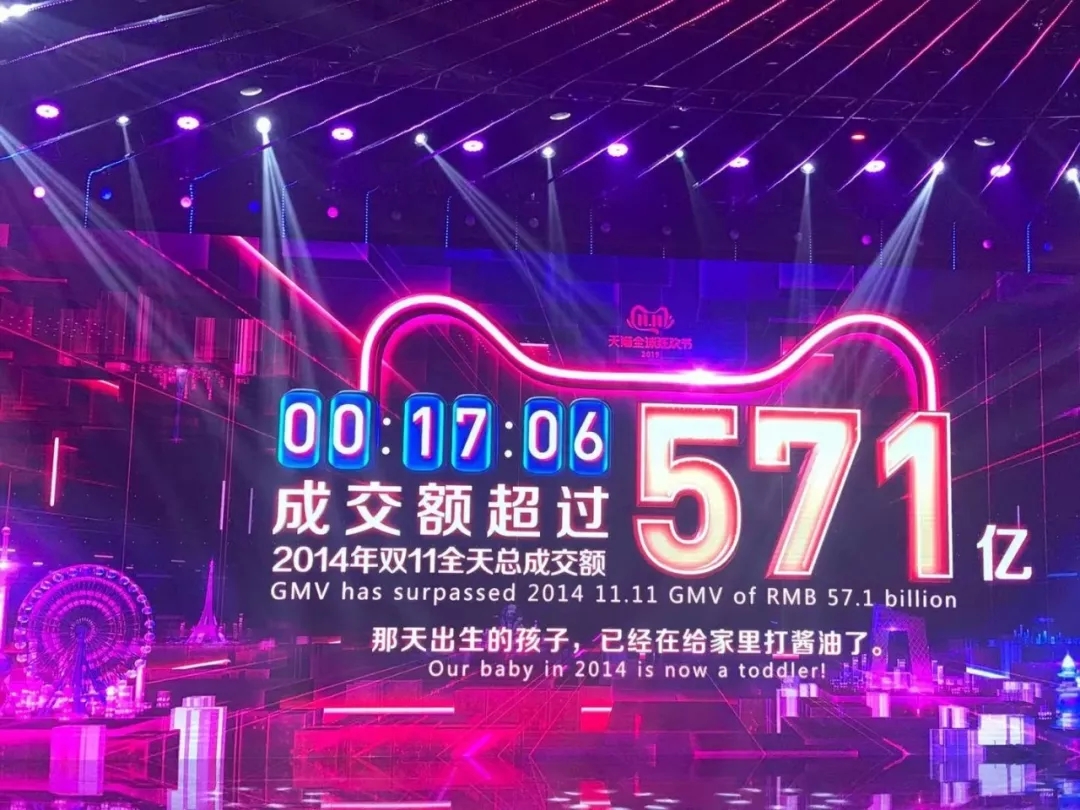 破1000億僅用時1小時3分59秒。而去年,這一數(shù)據(jù)為1小時47分。
