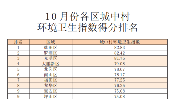 10月份城中村環(huán)境衛(wèi)生指數(shù)測(cè)評(píng)成績(jī)發(fā)布