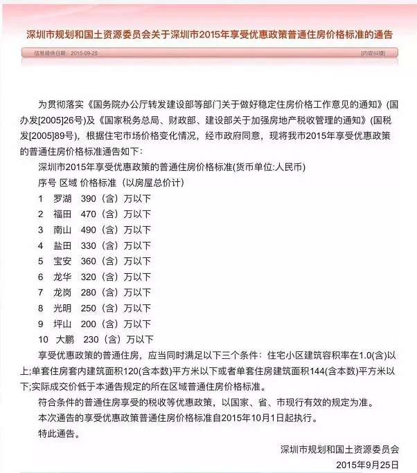 2015年,深圳普通住房標(biāo)準(zhǔn)出臺,規(guī)定南山總價在490萬以上、福田總價在470萬、羅湖總價在390萬以上的房源均屬于豪宅,需要按照豪宅的標(biāo)準(zhǔn)交稅。