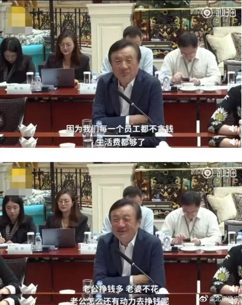 5月21日,任正非在華為總部接受采訪時,談到華為每年花200億美元在研發(fā)上,即使華為財務(wù)受到一點挫折也不會影響科研投入,因為員工都不貪錢,生活費都夠了。“你去問奢侈品店里買幾個包的,老公是哪里的?華為的。老婆不花,老公怎么有動力去掙錢呢?”