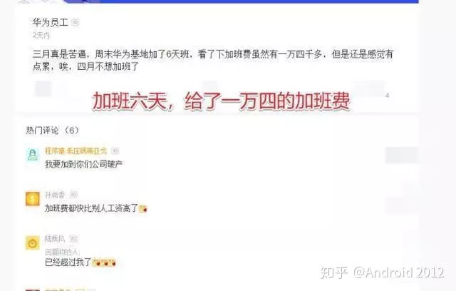 曾有華為員工在網(wǎng)上表示,華為基地加了6天班,看了下加班費(fèi),雖然有14000多,但還是感覺(jué)有點(diǎn)累,4月不想加班了。