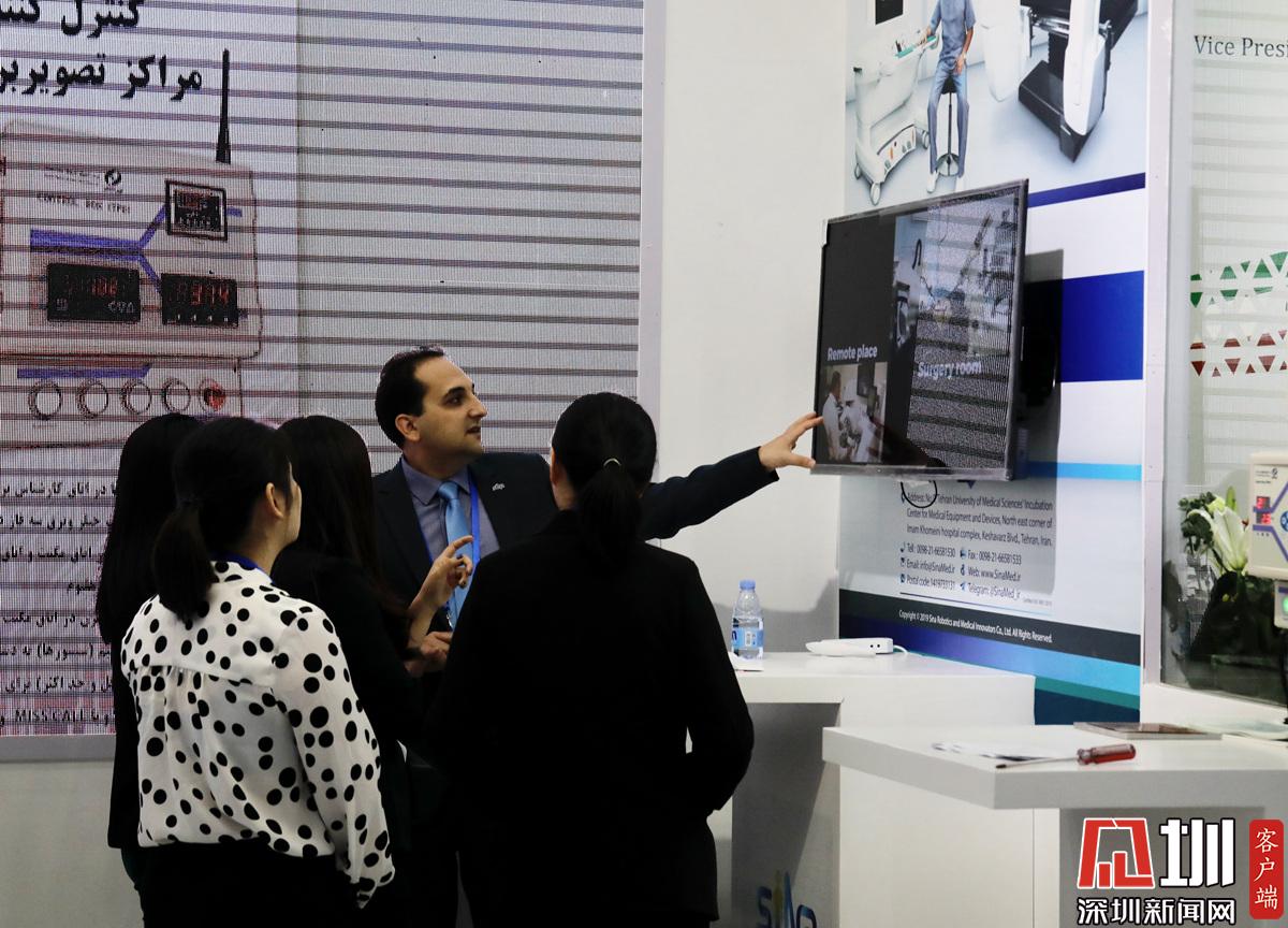 一帶一路專區(qū),一位外國參展商正在介紹產(chǎn)品。
