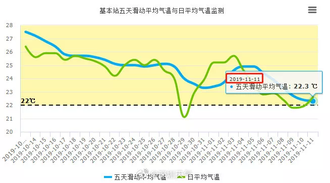 需要連續(xù)5天滑動(dòng)平均氣溫≤22℃