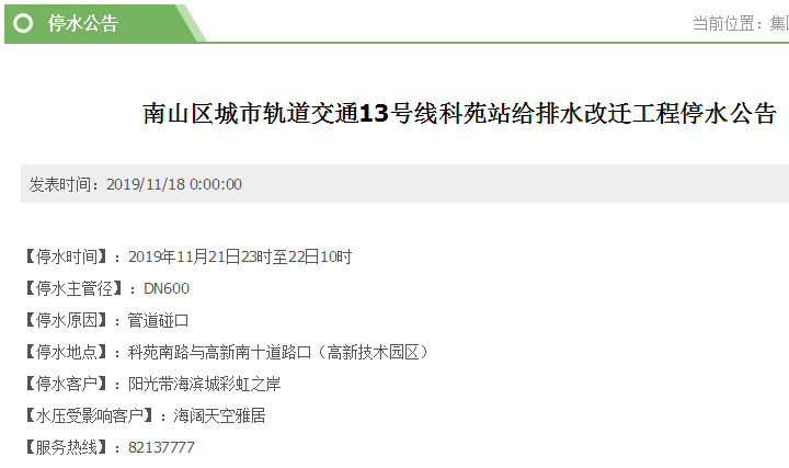 停水時(shí)間:11月21日23時(shí)至22日10時(shí)
