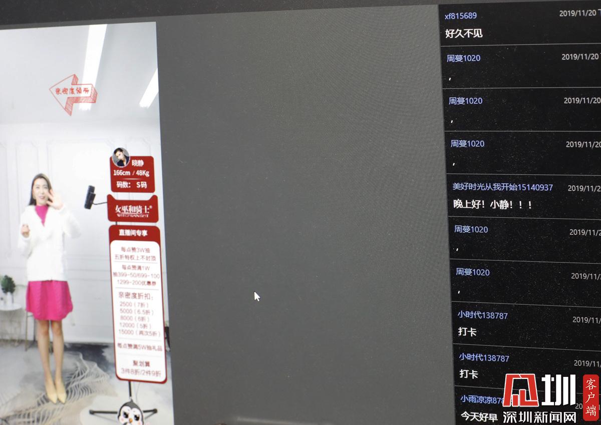 見圳客戶端、深圳新聞網(wǎng)2019年11月25日訊(見圳客戶端、深圳新聞網(wǎng)記者楊浩翰)“哈嘍大家晚上好,我是曉靜,我們開播啦,好久不見!”晚上六點,呂曉靜準時的站在攝像頭前,開始了她五個小時不間斷的直播。32歲的呂曉靜是一位新疆姑娘,現(xiàn)在的她,是一名在深圳的“帶貨”主播。