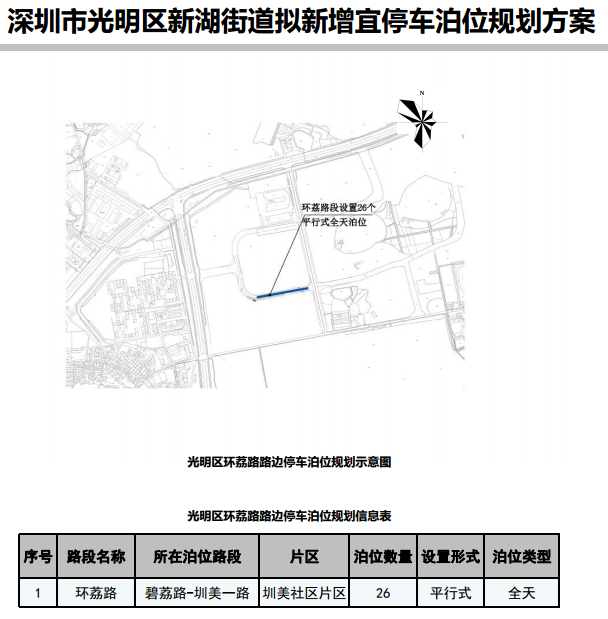其中,在寶安區(qū)3條道路新增316個宜停車泊位、龍崗區(qū)23條道路新增890個宜停車泊位、龍華區(qū)14條道路新增702個宜停車泊位、光明區(qū)9條道路新增305個宜停車泊位、大鵬新區(qū)5條道路新增157個宜停車泊位。具體規(guī)劃方案如下: