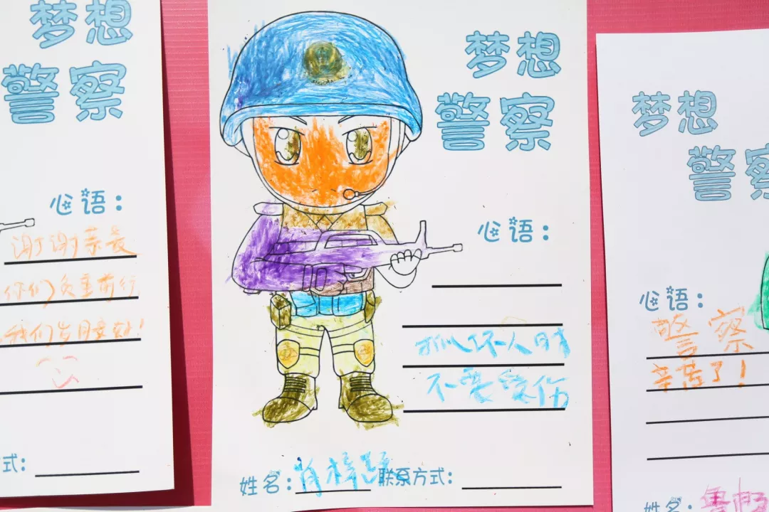 每一年,可愛的孩子們都會在這里畫出他們心目中的警察,留下暖心的話,許下“警察夢”。