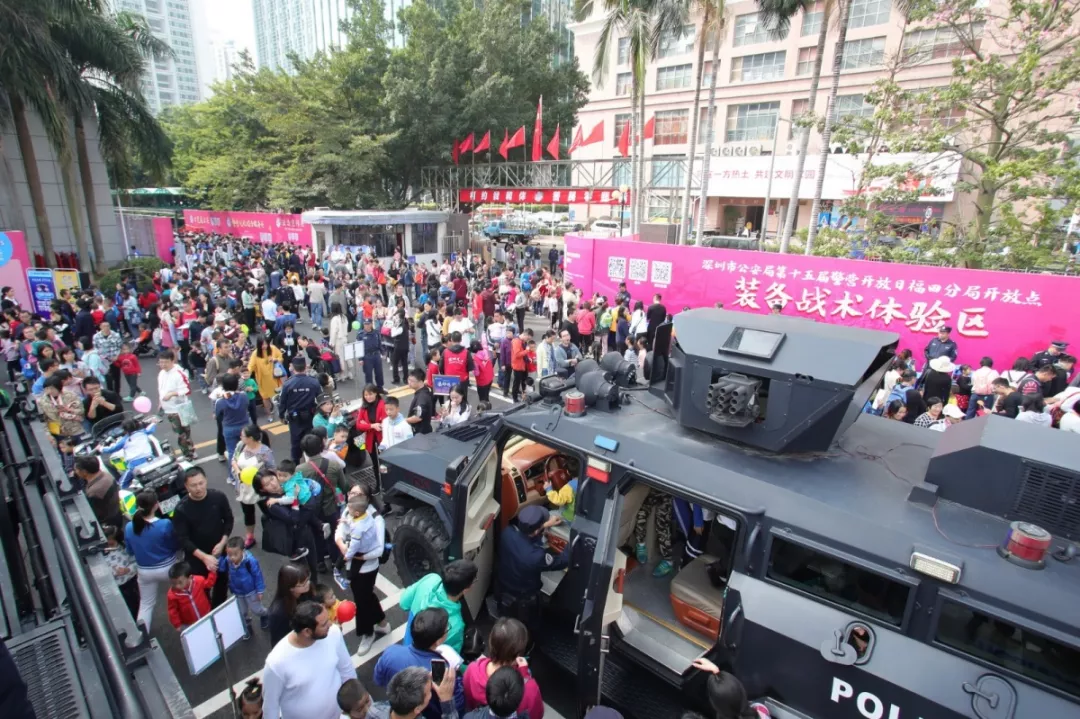 開放日現(xiàn)場,“反詐騙我在線”倡議行動啟動,線上微程序引市民爭相體驗;首批“福田警民關(guān)系建設(shè)形象代言人”受聘,為警民關(guān)系代言;代表委員媒體進警營,開門納諫為民解難題、贈書關(guān)懷溫暖警心;警犬沖鋒槍裝甲車齊上陣,13個活動區(qū)域精彩紛呈。周邊市民扶老攜幼、搭伴前來,過足“警察”癮。據(jù)了解,當天豐富多彩的活動共吸引了約15萬市民線上線下齊參與體驗,多角度零距離了解福田“警”色,感受別樣“警”彩。