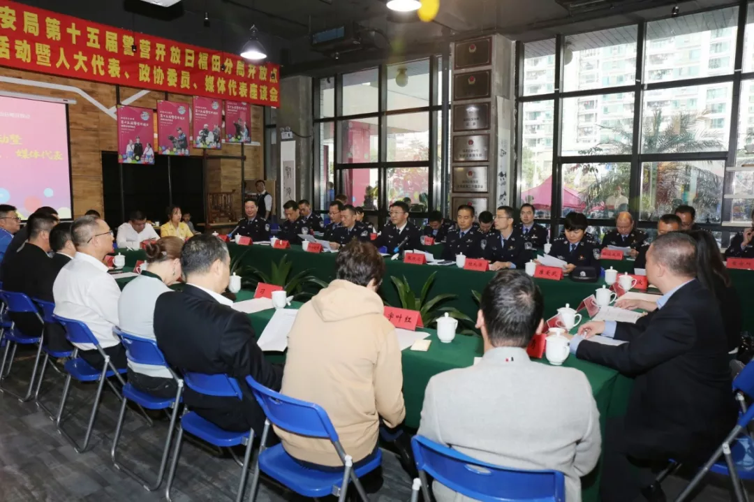 在警察文化中心,福田公安分局開展了關(guān)愛警察暨“人大、政協(xié)、媒體進警營”建言獻策座談活動,多方代表近距離互動交流,全方位了解警隊工作,開門納諫為民解難題,進一步增進對分局工作的理解、信任和支持。隨后,福田公安分局領(lǐng)導和人大代表、政協(xié)委員、媒體代表慰問優(yōu)秀民警代表,并贈授《福田警色》、《平安景色》、《福警老照片》報道畫冊。