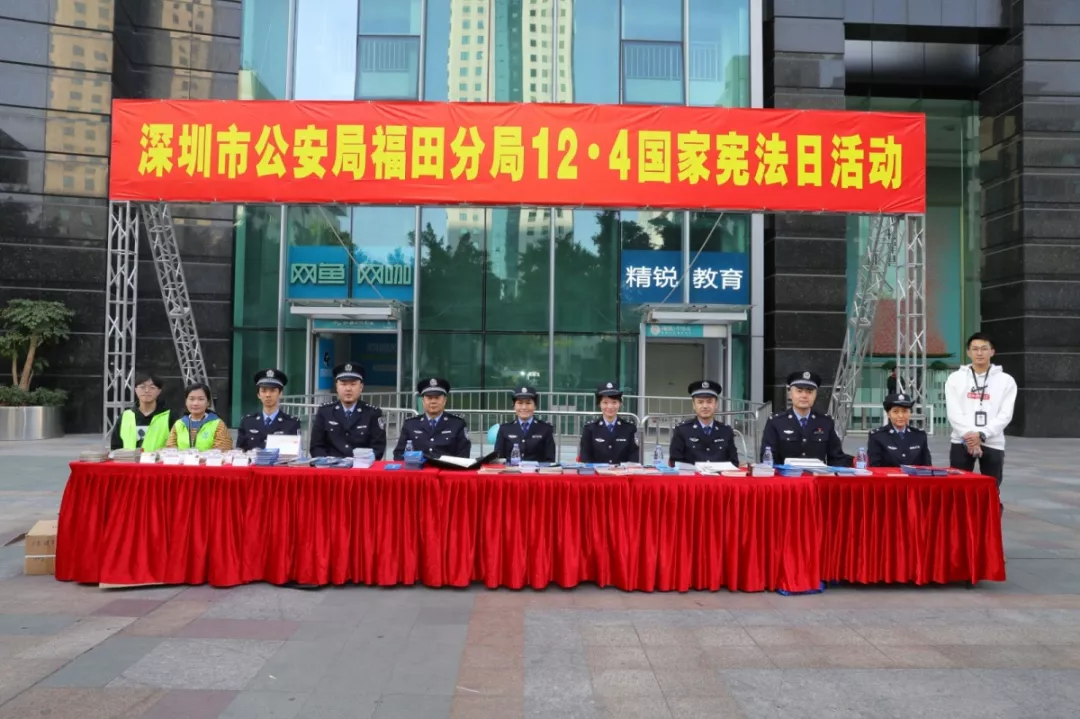為全面貫徹落實(shí)習(xí)近平總書記全面依法治國新理念新思想新戰(zhàn)略,增強(qiáng)全社會(huì)憲法意識,弘揚(yáng)憲法精神,深圳市公安局福田分局響應(yīng)上級號召,于12月4日下午福田區(qū)馬成時(shí)代廣場開展了“12·4”國家憲法宣傳日活動(dòng)。福田公安分局法制科牽頭組織人口科、治安科、刑警大隊(duì)、經(jīng)偵大隊(duì)、網(wǎng)警大隊(duì)、禁毒大隊(duì)、出入境管理大隊(duì)單位骨干民警參加此次活動(dòng)。