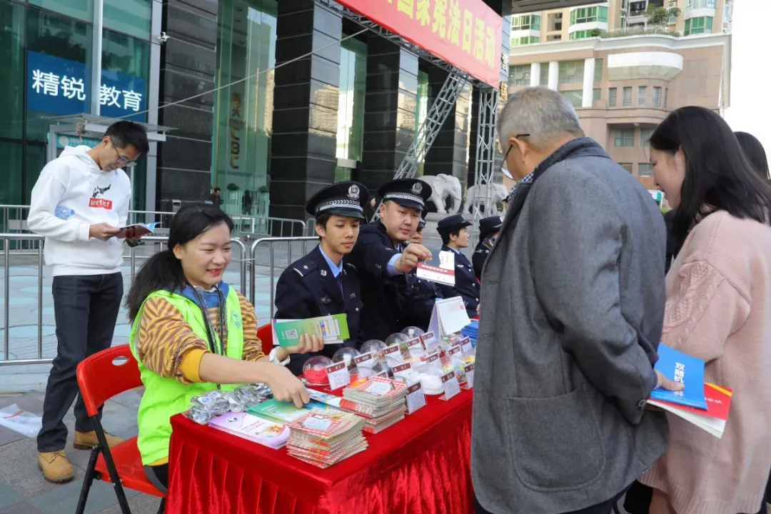 在活動(dòng)現(xiàn)場,民警們親切地與前來咨詢的人民群眾交流,為群眾答疑,主動(dòng)向群眾派發(fā)法治宣傳資料,普及法律知識,耐心為群眾講解接警辦案流程、反詐騙等群眾關(guān)心的問題,獲得了人民群眾的認(rèn)可。
