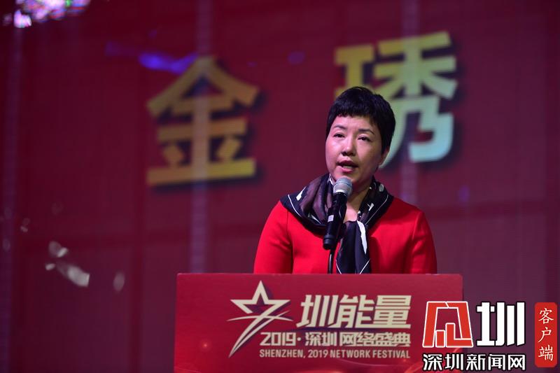 市網(wǎng)信辦副主任、市互聯(lián)網(wǎng)行業(yè)聯(lián)合會(huì)會(huì)長金琇致辭。見圳客戶端、深圳新聞網(wǎng)記者陳飛 攝