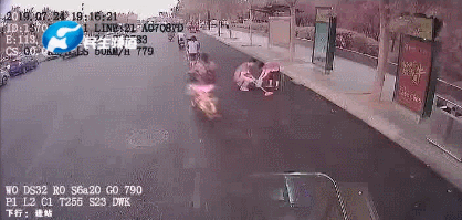 車流中,這個彎腰的小男孩,
