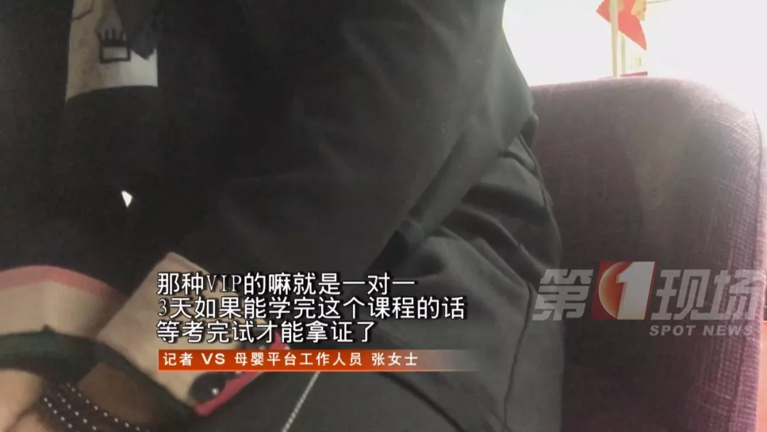 工作人員繼續(xù)介紹,有證書的保姆育嬰師起薪至少會高出500元。如果記者現在交錢學三個班,他們還可以贈送價值4500元她們研發(fā)的APP課程,并表示他們這家機構在深圳這一塊是前五名的。