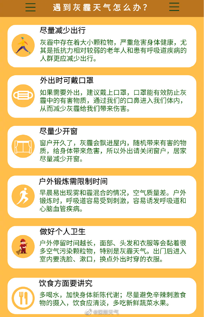 由于大氣污染物擴(kuò)散條件較差,西部出現(xiàn)了輕微到輕度灰霾,午后會(huì)有所好轉(zhuǎn)。但今天夜間至明日早晨仍有輕微至輕度灰霾,各位市民注意避免長時(shí)間劇烈運(yùn)動(dòng),特別是老人小孩和患病群體。