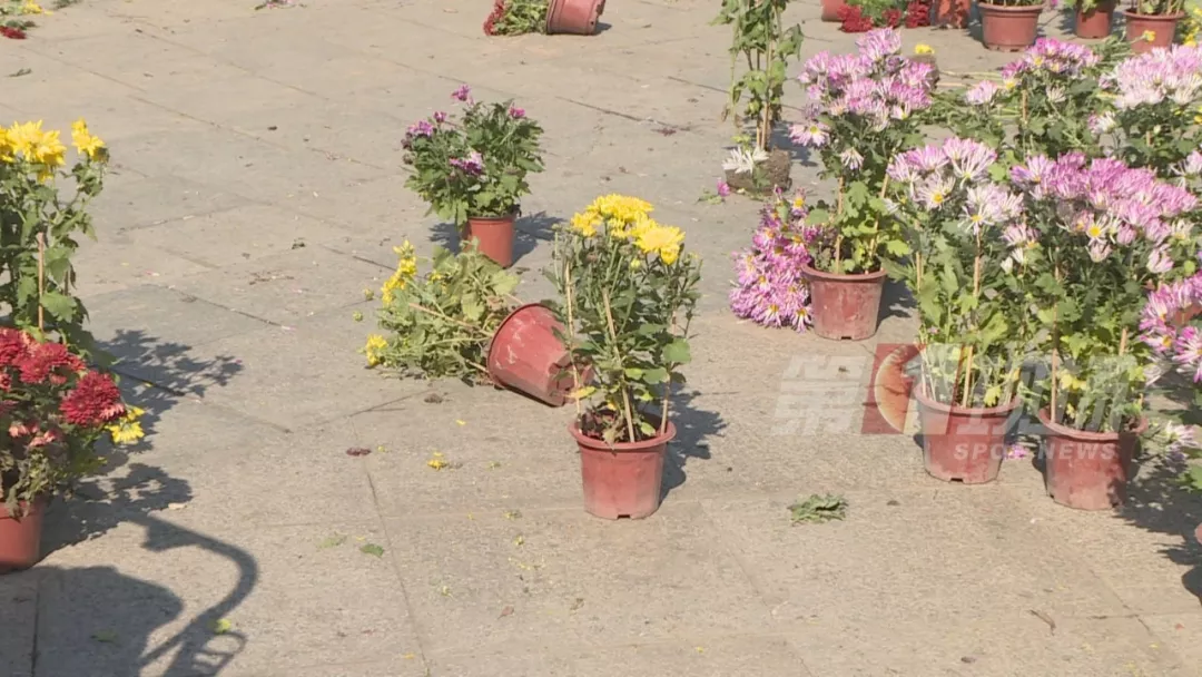 記者第一時間趕到花展現(xiàn)場,在東湖公園正門口,無論花壇周邊擺放的鮮花,還是掛在護欄上點綴的盆花,都已經(jīng)被搬得七七八八了。