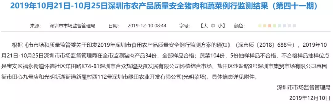 豬肉和蔬菜例行監(jiān)測(cè)結(jié)果