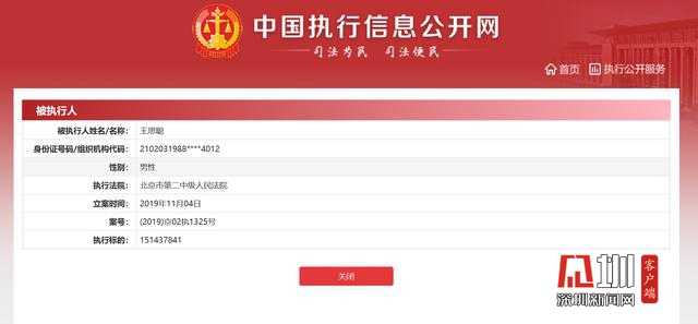 中國(guó)執(zhí)行信息公開(kāi)網(wǎng)上發(fā)布的被執(zhí)行人王思聰信息頁(yè)面截圖。