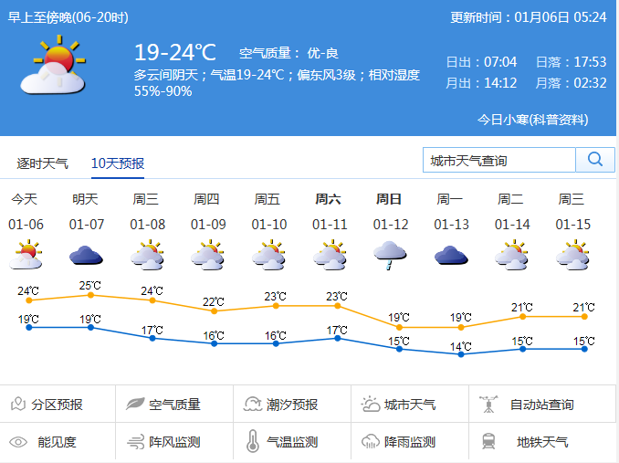 見圳客戶端·深圳新聞網(wǎng)2020年1月6日訊 據(jù)深圳市氣象臺消息,預(yù)計本周初深圳多云間陰天,早晚有零星小雨和輕霧;周三至周四受弱冷空氣影響,沿海和高地陣風6~7級,早晚清涼;周五至周六多云,氣溫回升,周日受冷空氣影響,氣溫再次下降。