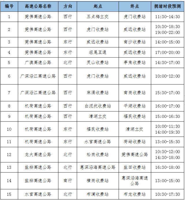 具體來(lái)看主要高速公路離深擁堵時(shí)段預(yù)測(cè),如果可以,避開(kāi)這些時(shí)間: