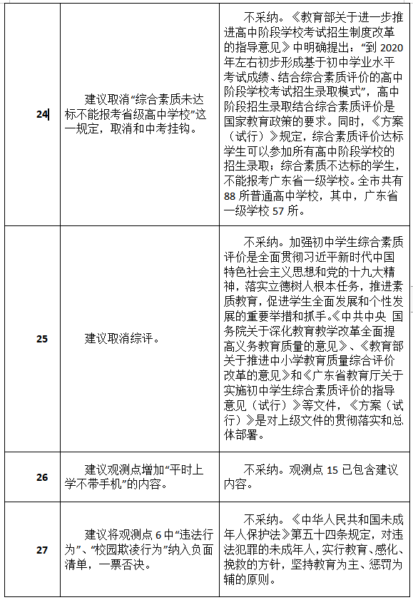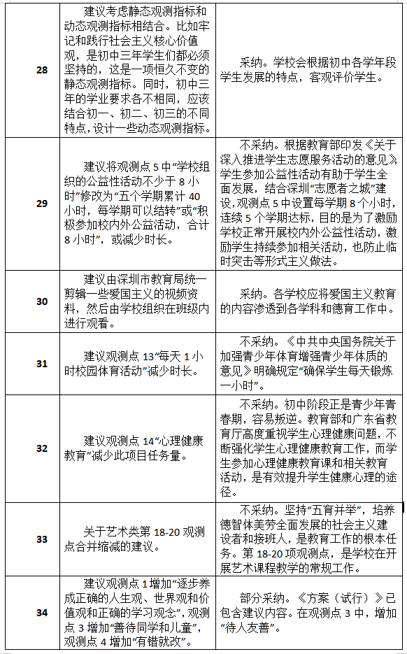 原標(biāo)題:最新進(jìn)展!深圳初中綜評(píng)新方案征集到34類(lèi)建議,其中19類(lèi)被采納或部分采納