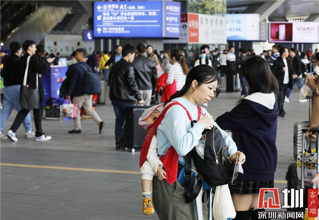 深圳北站東廣場(chǎng)入站口,一位家長(zhǎng)背著一位熟睡的孩子。