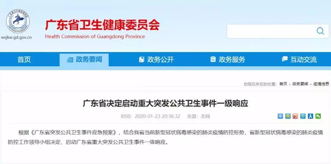 廣東啟動重大公共衛(wèi)生事件一級響應(yīng)