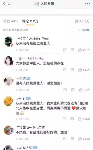 在武漢市委書記回應歧視湖北人的微博下面,